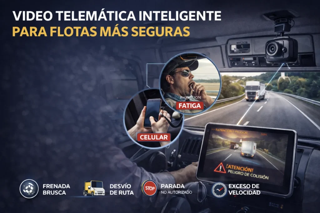 Supervisa carretera, cabina y operación en tiempo real con tecnología capaz de detectar eventos críticos como fatiga, distracción, uso de celular, exceso de velocidad, frenadas bruscas, desvíos de ruta, paradas no autorizadas y riesgos de colisión.